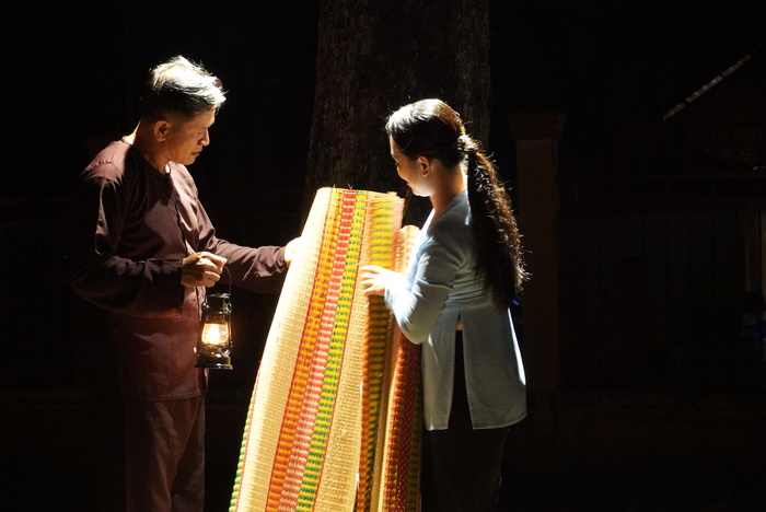 Thật hạnh phúc khi được hoà mình trong đêm tái hiện hoạt động của ngôi chợ trăm năm trước. Những chiếc áo bà ba mộc mạc, người bán người mua, người tới người lui, người đứng người ngồi, trên tay cầm những chiếc đèn dầu le lói. Chiếu được đội trên đầu, chiếu được vác trên vai, chiếu được quấn bên mình. Chiếu trên bờ, chiếu dưới ghe. Tiếng rao hàng lảnh lót chen lẫn câu hò điệu lý, tiếng hỏi han giá cả, mà nghe thật kỹ hình như không chỉ để bán mua từng đôi chiếu mà còn như lời hỏi thăm, căn dặn. Chuyện gia đình, chuyện cuộc sống, chuyện làm lụng, nghe sao thật chân quê, thân tình.