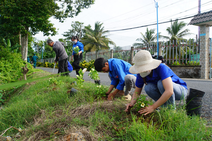 Đoàn viên, thanh niên và người dân trồng hoa ven các tuyến đường