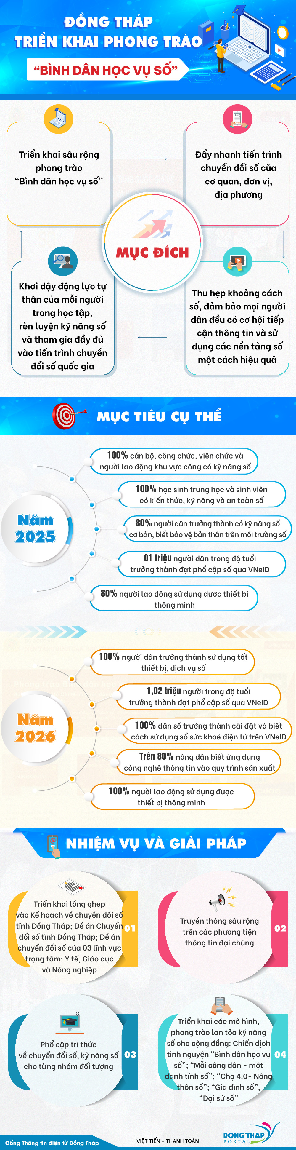 [Infographic] Đồng Tháp: Triển khai phong trào “Bình dân học vụ số”