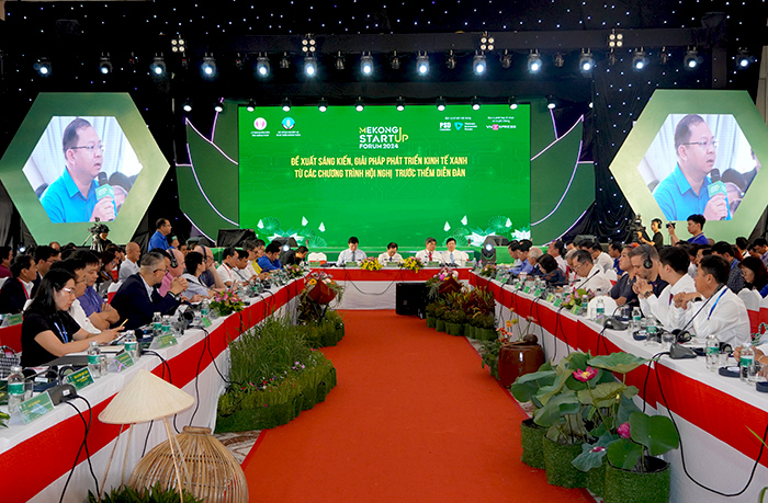 Trong phiên toàn thể của Diễn đàn Khởi nghiệp Đồng bằng sông Cửu Long - Lần II  năm 2024 các đại biểu, chuyên gia được lắng nghe những đề xuất, sáng kiến, giải pháp phát triển kinh tế xanh từ các chương trình hội nghị trước thềm diễn đàn.