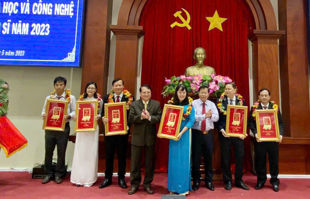 Nhà giáo Lê Thị Kim Loan (áo xanh) được vinh danh Tiến sĩ vào năm 2023