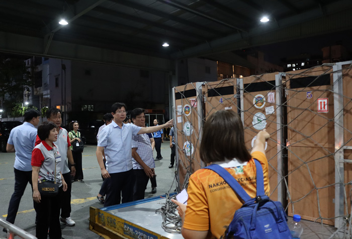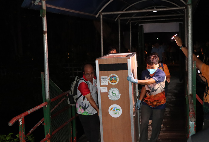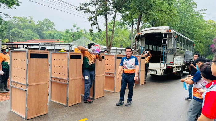 06 cá thể Sếu đầu đỏ được nhân nuôi tại Vườn thú Nakhon Ratchasima, tỉnh Korat, Vương quốc Thái Lan. Để vận chuyển về Việt Nam (vào sáng ngày 10/4), sếu được đưa vào thùng chuyên dụng, vận chuyển bằng đường bộ và đường hàng không. Ảnh: Tiến sĩ Trần Triết