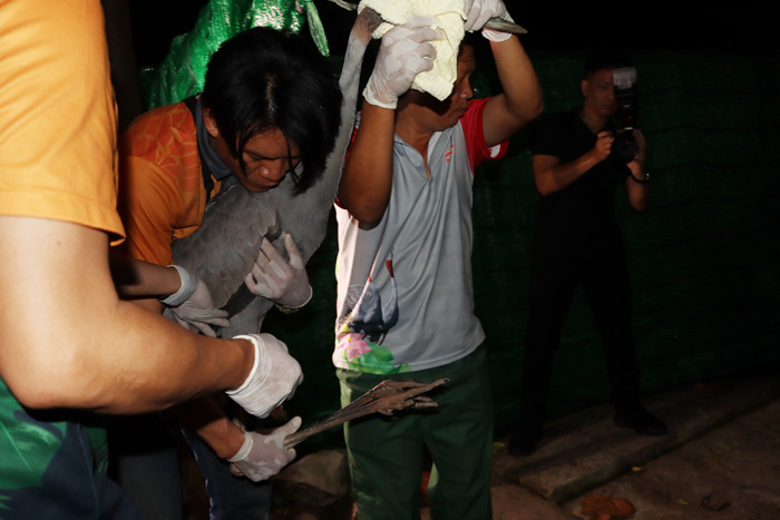 Sếu đầu đỏ được nhanh chóng vận chuyển đến Thảo Cầm Viên Sài Gòn để kiểm dịch, cách ly