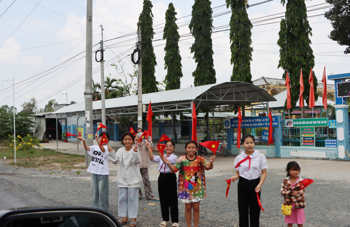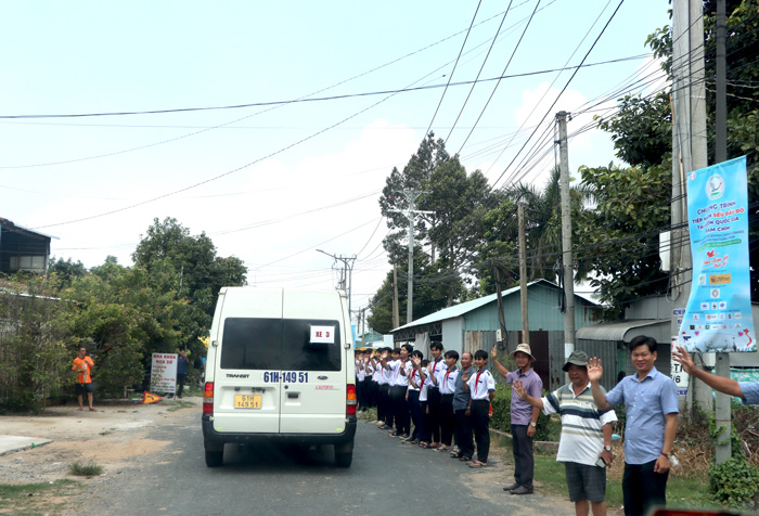 Đông đảo người người dân và các em học sinh tại huyện Tam Nông vui mừng chào đón Sếu đầu đỏ trở về Tràm Chim