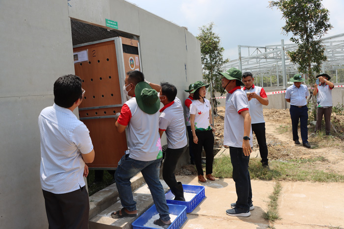 Chuồng được thiết kế theo mô hình bán hoang dã. Việc khử trùng trước khi bước vào chuồng nuôi được đảm bảo