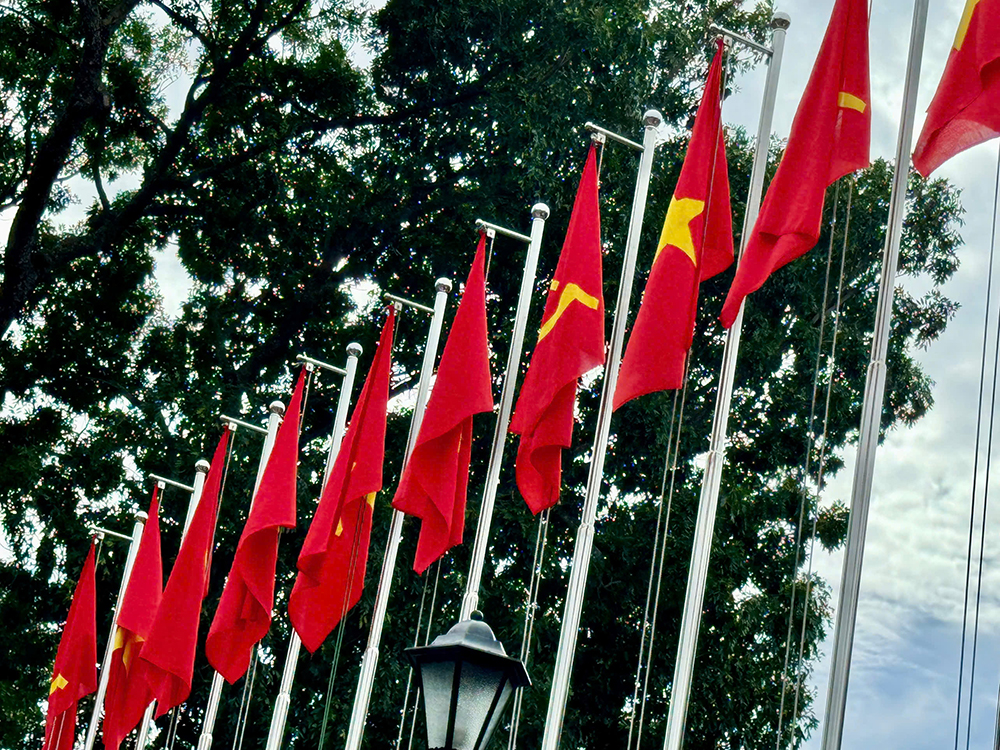 Các tuyến đường Rạch Gầm, 30/4, Yersin treo cờ Tổ quốc, cờ Đảng chào mừng Đại hội