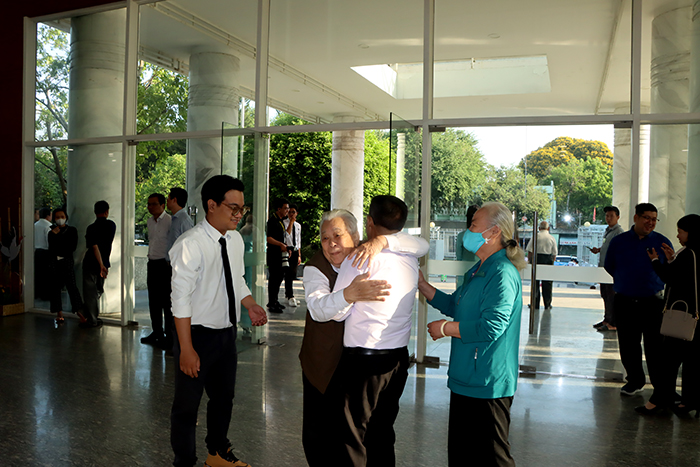 Những cái ôm ấm áp thể hiện niềm vui, xúc động của bà con đồng hương khi gặp lại nhau