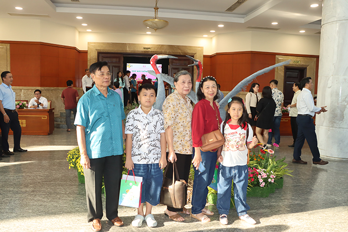 Bà con đồng hương thích thú chụp ảnh bên biểu tượng Sếu đầu đỏ