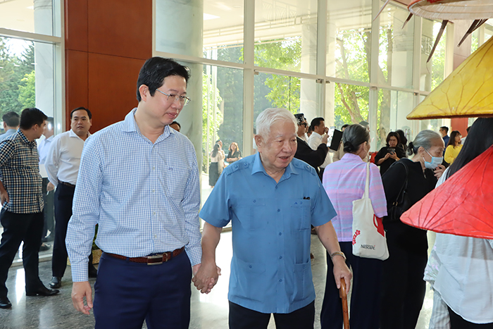 Phó Bí thư Thường trực Tỉnh ủy Phan Văn Thắng vui mừng đón tiếp các đại biểu và những người con quê Đồng Tháp đến dự buổi họp mặt hội đồng hương