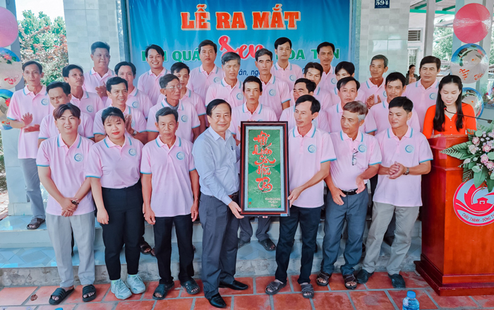 Các đại biểu chụp ảnh lưu niệm tại buổi ra mắt Hội quán sen Hòa Tân.