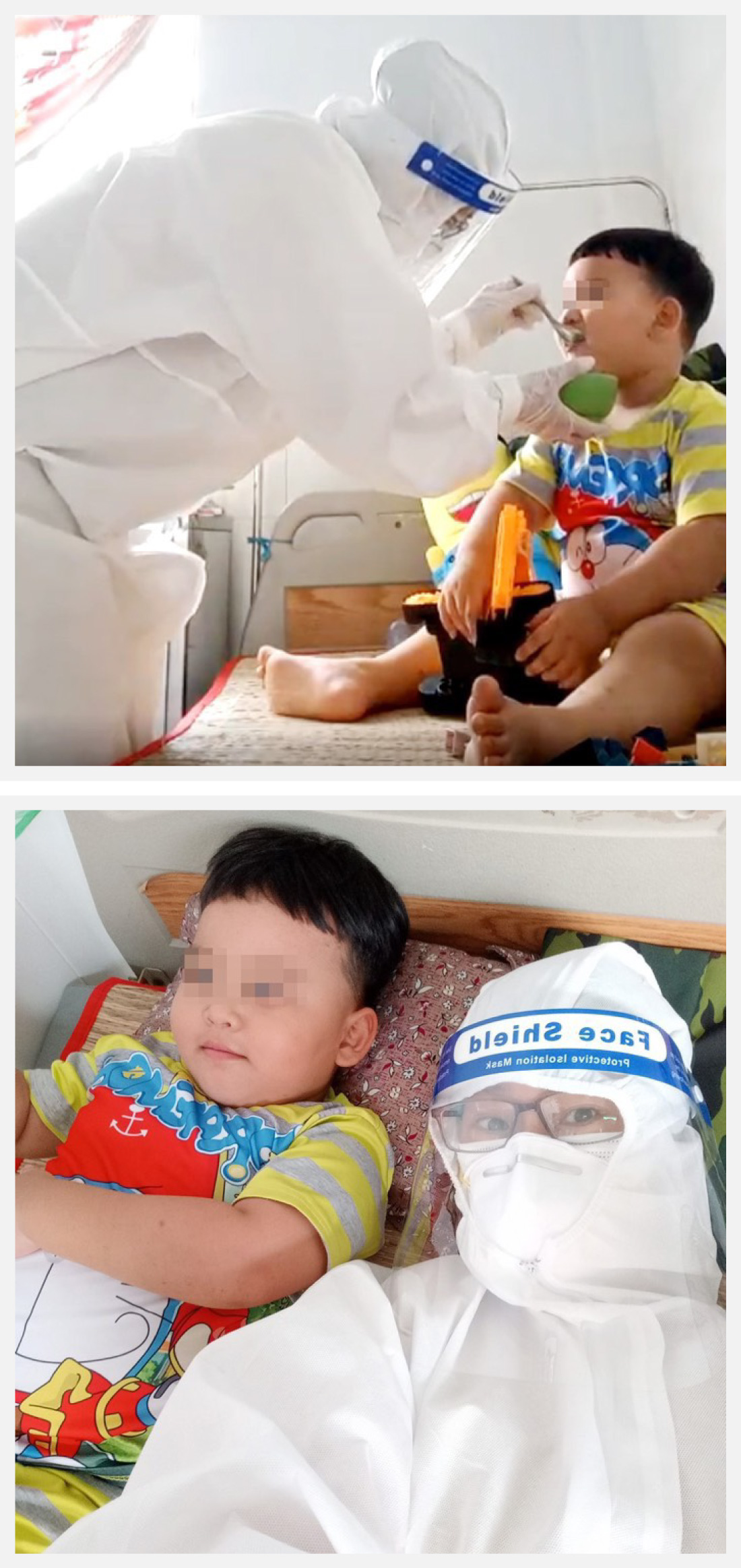 Trong đợt dịch Covid-19 vừa qua, trước hoàn cảnh đáng thương của bé K., mới 3 tuổi, mắc Covid-19 và không có người thân bên cạnh chăm sóc, chị Nguyễn Thị Sáu đã tự nguyện đăng ký làm người chăm sóc và theo dõi, điều trị cho bệnh nhi 3 tuổi này.