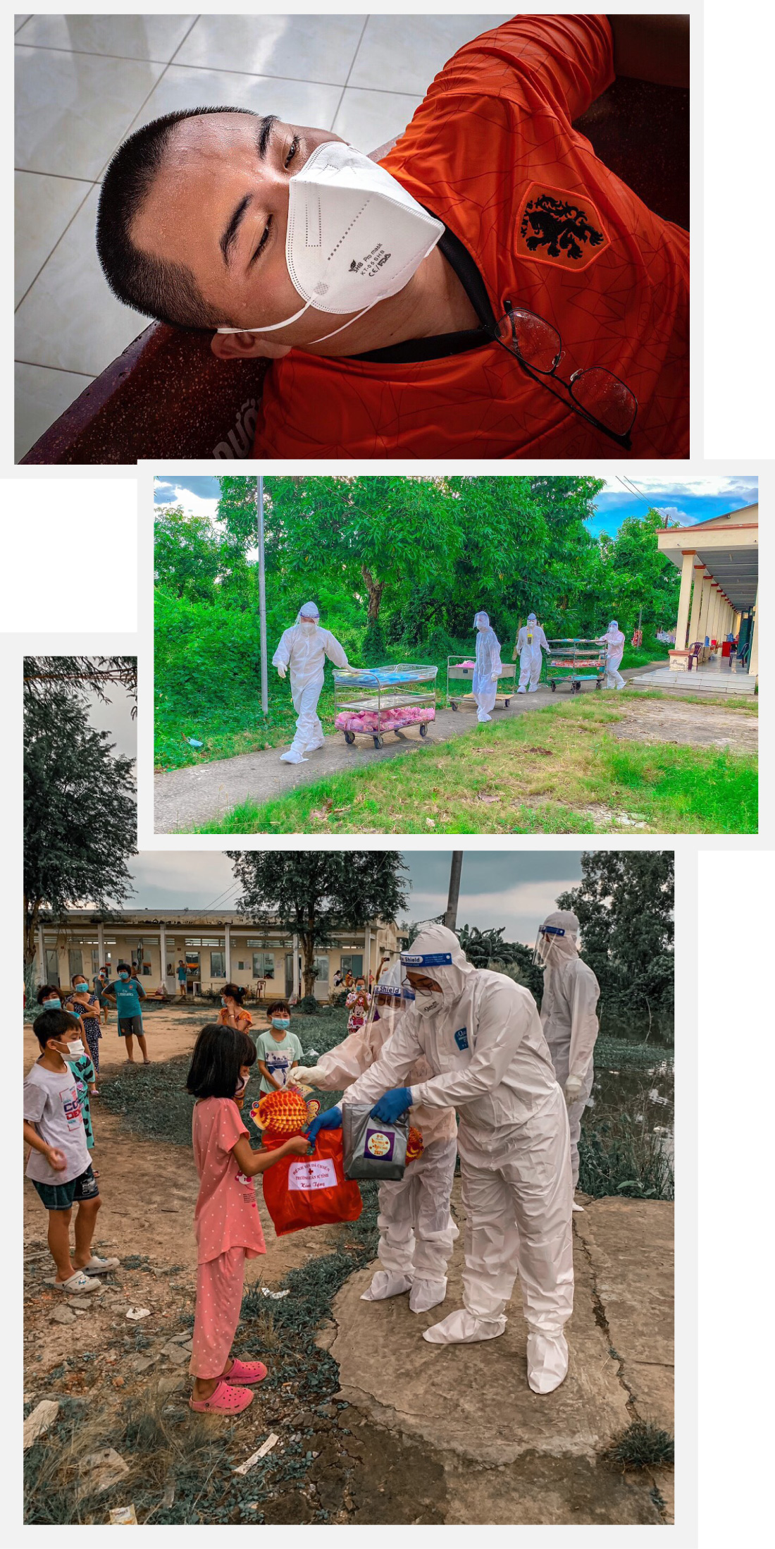 Công việc hằng ngày của chúng tôi trong khu ICU là điều trị, chăm sóc cho bệnh nhân Covid-19 nặng, nguy kịch. Do đây là khu điều trị đặc biệt nên tất cả công tác chăm sóc đều do nhân viên y tế thực hiện, không phân biệt bác sĩ, điều dưỡng; từ thay tã, cho ăn, tắm gội, điều trị tâm lý, tâm sự với bệnh nhân v.v.. Với lượng bệnh nhân đông, áp lực công việc lớn, môi trường làm việc có nguy cơ lây nhiễm cao nhưng các y, bác sĩ chưa bao giờ nản chí.
