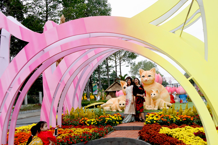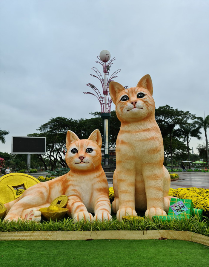 Đại cảnh mở đầu đường hoa là hình ảnh đôi mèo – linh vật của Tết Quý Mão 2023,