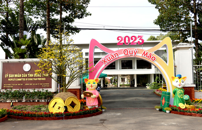Cổng trụ sở Ủy ban nhân dân tỉnh Đồng Tháp trên tuyến đường Lý Thường Kiệt