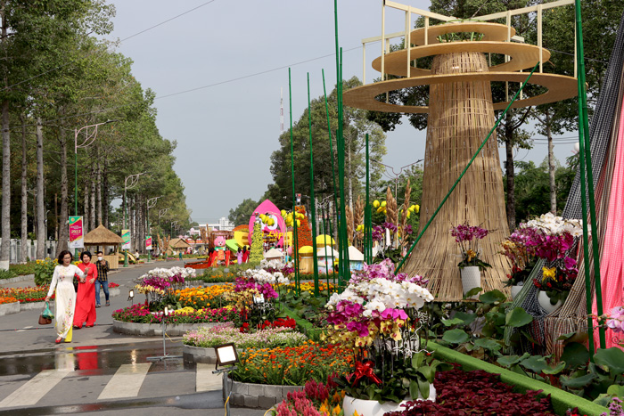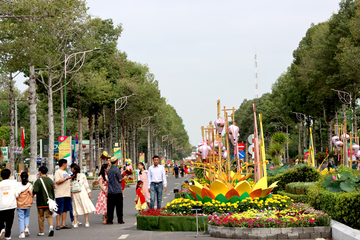Trên tuyến đường Lý Thường Kiệt, đường hoa xuân được thiết kế với 03 phân đoạn theo các chủ đề: Nét đẹp ngày Tết quê hương, Tinh hoa vùng Đất Sen hồng, Đồng Tháp - Vững tin tiến bước.