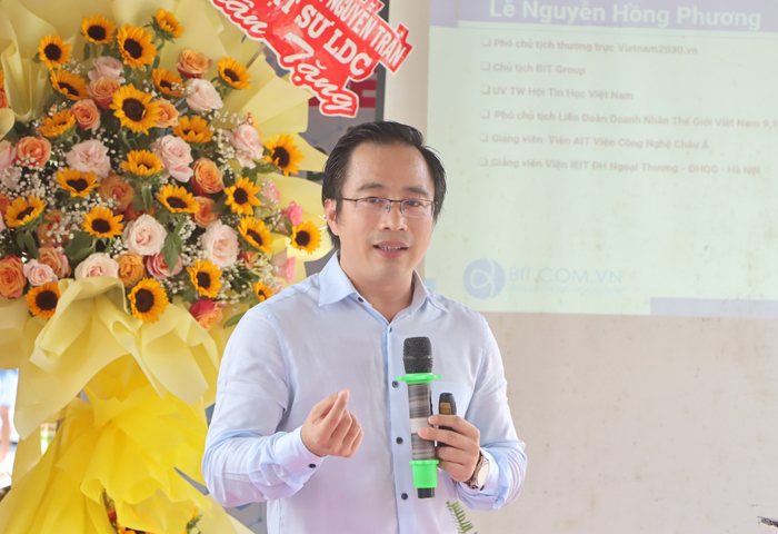 Tại đây, các đại biểu, doanh nhân và đoàn viên thanh niên được diễn giả Lê Nguyễn Hồng Phương - Phó Chủ tịch Thường trực Vietnam2030, Chủ tịch BIT Group chia sẻ kinh nghiệm, giải pháp cho những khó khăn mà doanh nghiệp, nhất là doanh nghiệp khởi nghiệp đang gặp phải trong quá trình thực hiện chuyển đổi số; cách xây dựng chiến lược, giải pháp để kinh doanh trên nền tảng số đạt hiệu quả v.v..