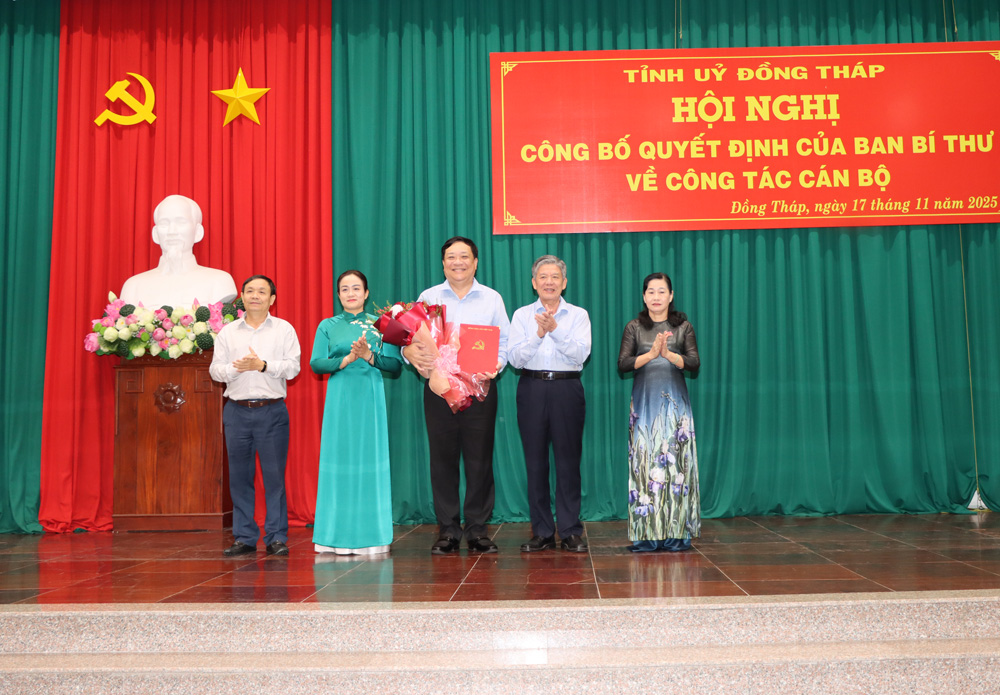 Chiều ngày 17/11, Tỉnh ủy Đồng Tháp tổ chức Hội nghị công bố quyết định của Ban Bí thư về công tác cán bộ. Hội nghị có sự tham dự của đồng chí Nguyễn Thành Tâm - Ủy viên Trung ương Đảng, Phó Trưởng Ban Tổ chức Trung ương; lãnh đạo các cơ quan Trung ương phụ trách địa phương; lãnh đạo tỉnh Cà Mau.