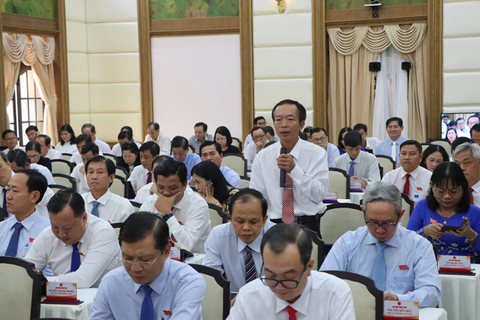 Bên cạnh đó, đại biểu Huỳnh Kim Thuần, đơn vị thành phố Cao Lãnh chất vấn Giám đốc Sở Thông tin và Truyền thông về giải pháp khắc phục tình trạng mạng lưới cáp viễn thông giăng mắc chồng chéo trên cột điện gây mất mỹ quan và có nguy cơ gây nguy hiểm cho con người.