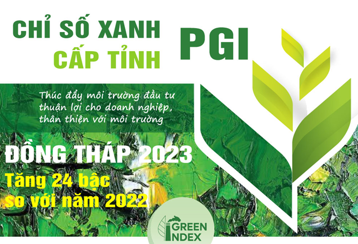 Tỉnh Đồng Tháp đã có sự vươn lên vượt bậc đối với Chỉ số Xanh cấp tỉnh (PGI) 2023, với 22,74 điểm, xếp thứ 18 cả nước, tăng 24 bậc so với năm 2022. Trong 04 chỉ số thành phần của PGI, tỉnh Đồng Tháp có điểm số đứng đầu cả nước về “giảm thiểu ô nhiễm và thiên tai” (chỉ số thành phần 1), đứng thứ 25 về “thúc đẩy thực hành xanh” (chỉ số thành phần 3), đứng thứ 27 về “chính sách khuyến khích và hỗ trợ” (chỉ số thành phần 4).