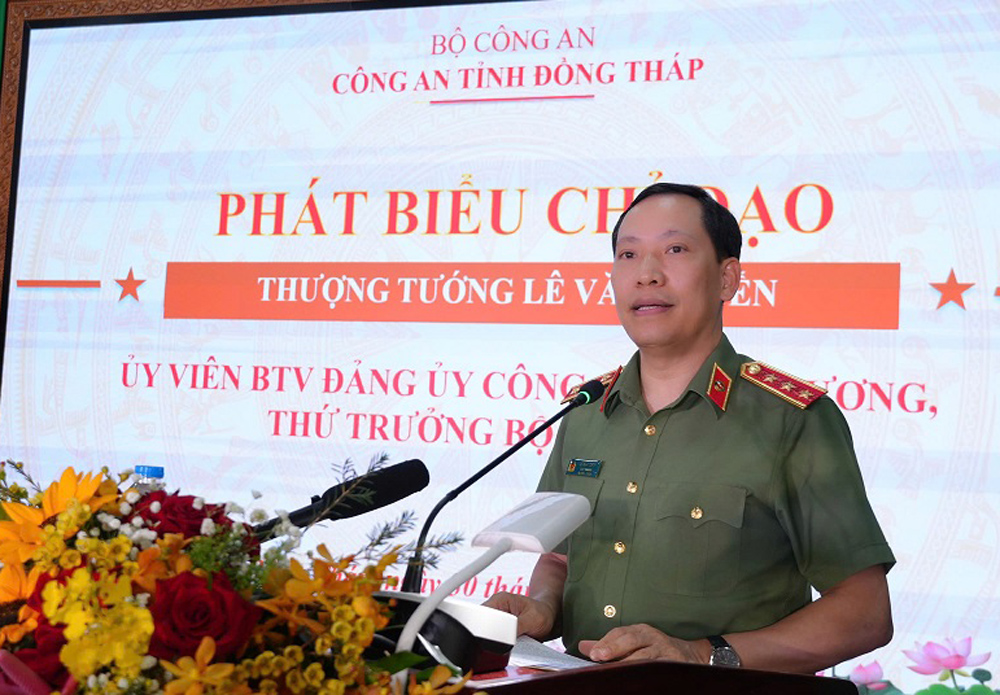 Phát biểu chỉ đạo hội nghị, Thượng tướng Lê Văn Tuyến - Thứ trưởng Bộ Công an ghi nhận, biểu dương những kết quả toàn diện mà Công an tỉnh Đồng Tháp đã đạt được trong năm qua; đồng thời, yêu cầu tiếp tục đổi mới tư duy, nâng cao chất lượng công tác tham mưu, chủ động nắm chắc tình hình, thực hiện nghiêm túc, hiệu quả Nghị quyết của Đảng ủy Công an Trung ương về nhiệm vụ bảo vệ an ninh quốc gia, bảo đảm trật tự an toàn xã hội và xây dựng Đảng, xây dựng lực lượng Công an. Công an tỉnh phải tiếp tục giữ vững an ninh biên giới; nắm chắc tình hình trên không gian mạng; bảo đảm tuyệt đối an ninh, an toàn các sự kiện chính trị quan trọng trong năm 2026; đẩy mạnh đấu tranh phòng, chống tội phạm, nhất là tội phạm có tổ chức, tội phạm công nghệ cao, ma túy, tham nhũng v.v..