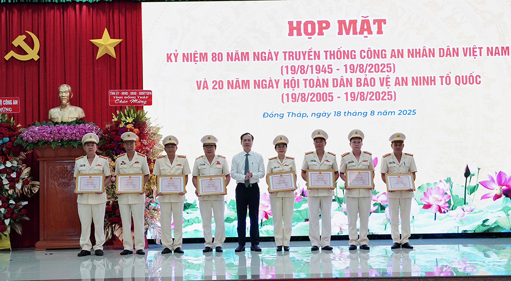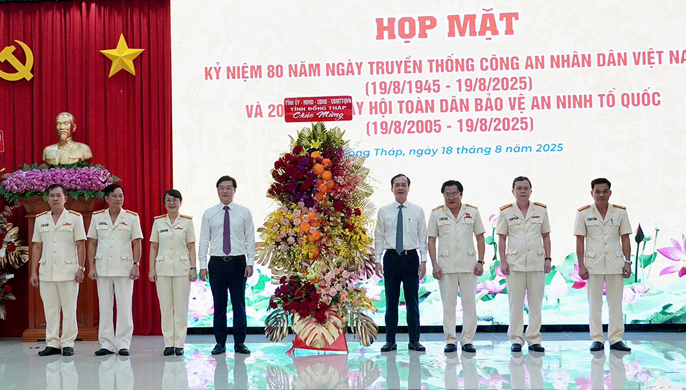 This is one of the requirements emphasized by Comrade Le Quoc Phong, Member of the Party Central Committee, Secretary of the Provincial Party Committee, and Head of the National Assembly Delegation of Đồng Tháp Province, at the Meeting held in commemoration of the 80th Anniversary of the Vietnam People's Public Security Force (19th August 1945 – 19th August 2025) and the 20th Anniversary of the National Day for National Security Protection (19th August 2005 – 19th August 2025) on the morning of 18th August.