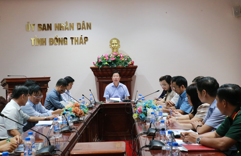 Vice Chairman of the Provincial People's Committee Huynh Minh Tuan chaired the meeting on the preparation for organizing the 2025 Dat Sen Hong - Dong Thap Marathon