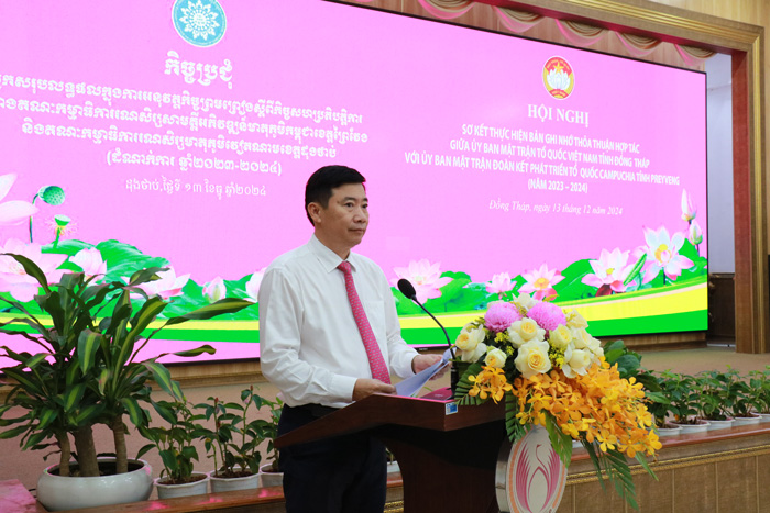 Deputy Secretary of the Provincial Party Committee/ Chairman of the People's Committee of Dong Thap province Pham Thien Nghia said that the successful signing of the Memorandum of Understanding on cooperation in the period of 2022 – 2025 by the two organizations of Dong Thap Front and Prey Veng has made an significant contribution to peace-building, friendship and cooperation to develop border areas.