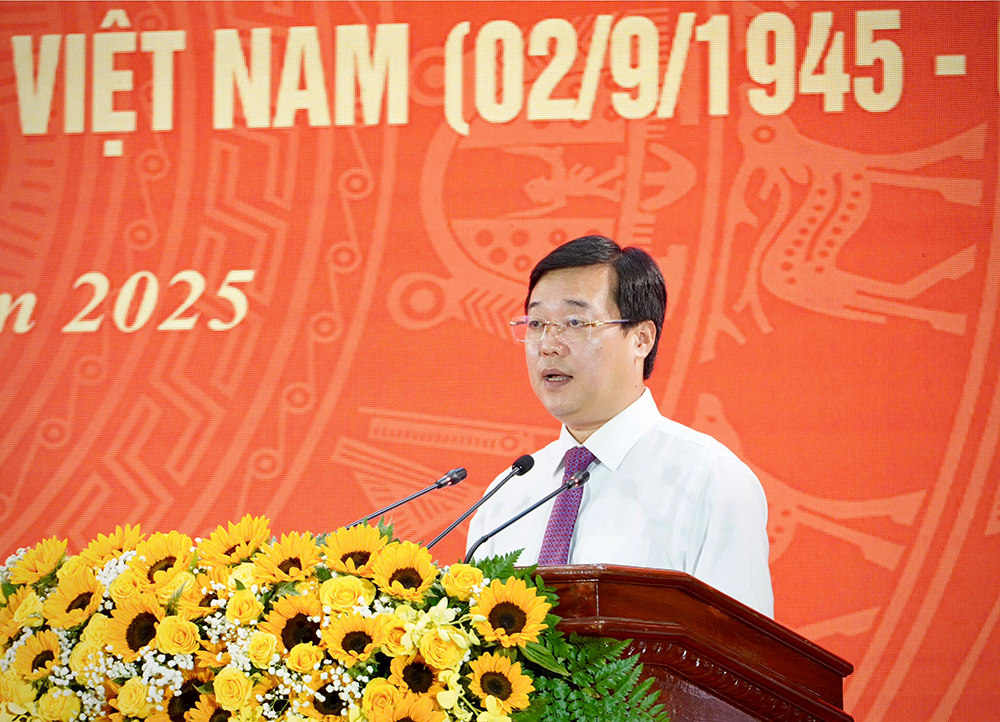 Một lần nữa, thay mặt lãnh đạo tỉnh, tôi kính chúc các đồng chí lãnh đạo, nguyên lãnh đạo Đảng, Nhà nước, Mặt trận Tổ quốc Việt Nam, lãnh đạo các Bộ, Ban, Ngành Trung ương, các đồng chí tướng lĩnh, các đồng chí lão thành cách mạng, quý mẹ Việt Nam anh hùng, Anh hùng lực lượng vũ trang nhân dân, Anh hùng Lao động, các đồng chí cựu chiến binh, quý vị khách quý và Nhân dân tỉnh nhà mạnh khỏe, hạnh phúc, thành công.