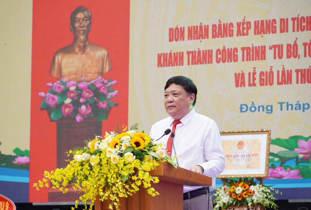 Nhân sự kiện trọng đại này, thay mặt lãnh đạo tỉnh Đồng Tháp, tôi xin bày tỏ lòng biết ơn sâu sắc đến Đảng, Nhà nước; các bộ, ban, ngành Trung ương; các nhà khoa học, chuyên gia; dòng tộc Nguyễn Sinh, các tổ chức, cá nhân đã luôn quan tâm, hỗ trợ, đồng hành cùng tỉnh trong suốt thời gian qua.
