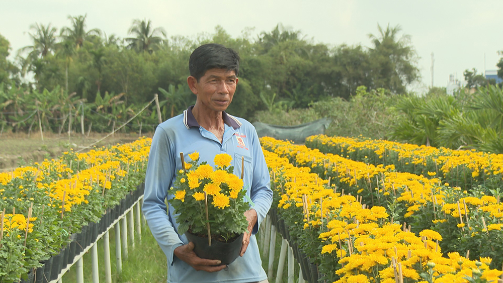 Ông Đoàn Huỳnh Hữu Phước, người có hơn 30 năm gắn bó với nghề trồng hoa, nhớ lại: “Hồi trước chỉ có mâm xôi vàng, vạn thọ, tiger thôi. Từ ngày vô Tổ hợp tác, học hỏi thêm, mới mạnh dạn trồng giống mới. Festival đầu tiên thì trồng sao nhái, hoa dừa cạn, năm nay thì trồng mâm xôi màu Hàn Quốc. Làm riết rồi quen, thấy cũng hiệu quả”.