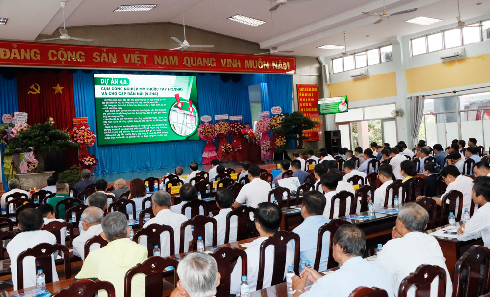 Lãnh đạo phường Mỹ Phước Tây báo cáo đến hội nghị về kết quả lãnh đạo sau 05 tháng tổ chức hoạt động mô hình chính quyền địa phương 2 cấp, định hướng phát triển kinh tế - xã hội phường trong thời gian tới. Cùng với đó, hội nghị còn thông tin, giới thiệu đến các doanh nghiệp, hộ kinh doanh về các dự án mời gọi đầu tư trên địa bàn phường Mỹ Phước Tây. Điển hình như: dự án trung tâm tổ chức sự kiện, hội nghị, nhà hàng, khách sạn; dự án cụm công nghiệp Mỹ Hạnh Trung; cụm công nghiệp Mỹ Phước Tây 2; dự án khu thể thao đa năng khu phố Long Phước v.v..