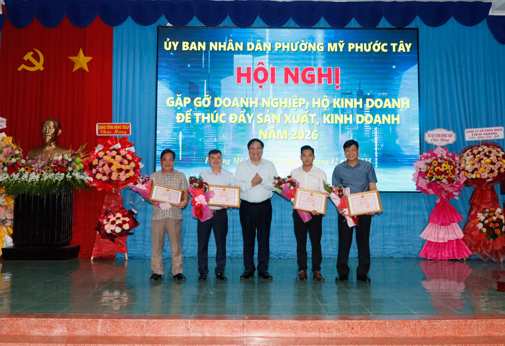 Nhằm tăng cường kết nối, củng cố niềm tin và phát huy vai trò đồng hành giữa chính quyền với doanh nghiệp, chiều ngày 09/12, Ủy ban nhân dân phường Mỹ Phước Tây tổ chức Hội nghị gặp gỡ doanh nghiệp, hộ kinh doanh để thúc đẩy sản xuất, kinh doanh năm 2026.