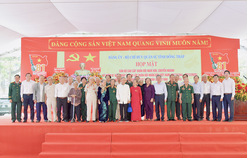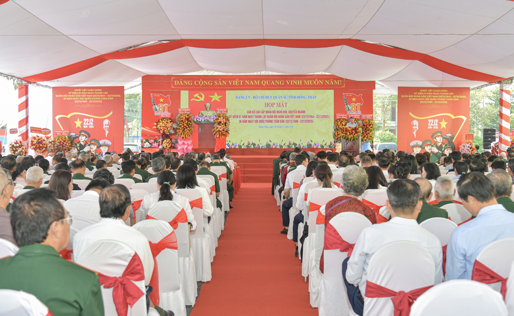 Sáng ngày 19/12, đồng chí Ngô Chí Cường - Ủy viên Ban Chấp hành Trung ương Đảng, Bí thư Tỉnh ủy Đồng Tháp đến dự buổi Họp mặt cán bộ cao cấp quân đội nghỉ hưu, chuyển ngành; kỷ niệm 81 năm Ngày thành lập Quân đội nhân dân Việt Nam (22/12/1944 - 22/12/2025), 36 năm Ngày hội Quốc phòng toàn dân (22/12/1989 - 22/12/2025).