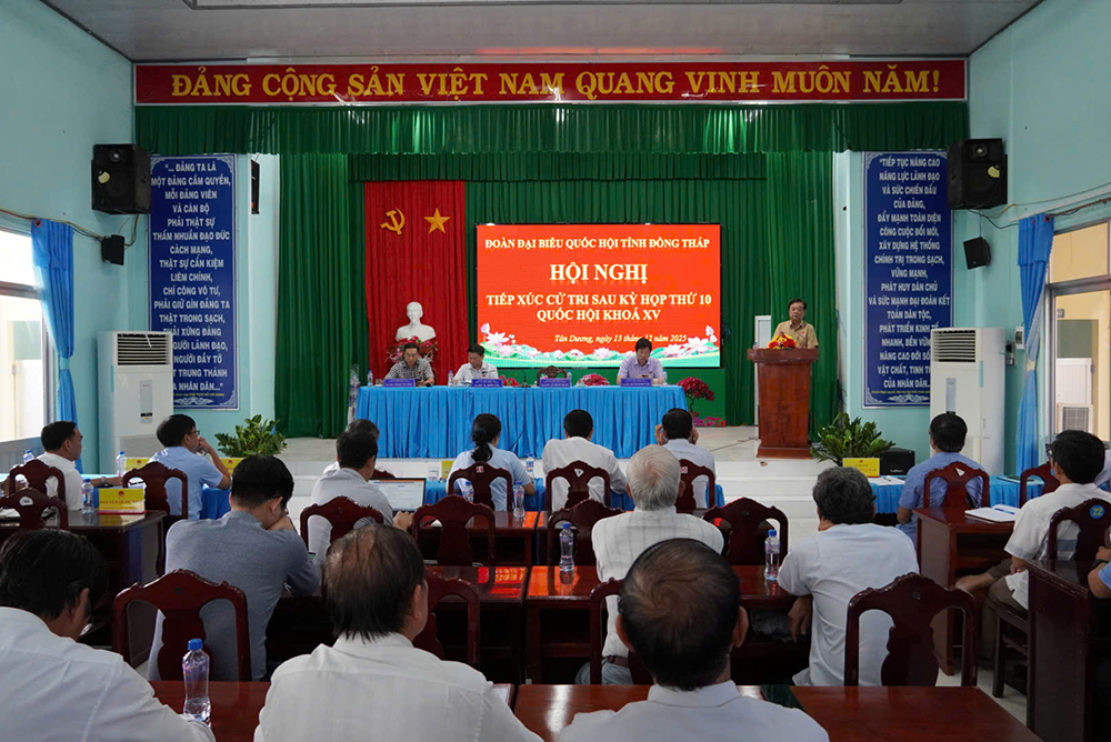 Sáng ngày 13/12, Đoàn đại biểu Quốc hội tỉnh Đồng Tháp có buổi tiếp xúc cử tri sau kỳ họp thứ 10 Quốc hội khóa XV. Các đại biểu Quốc hội gồm: ông Lê Minh Hoan - Ủy viên Ban Chấp hành Trung ương Đảng, Phó Chủ tịch Quốc hội; ông Phạm Văn Hòa - Ủy viên Ủy ban Pháp luật của Quốc hội, Phó Chủ tịch Hội luật gia tỉnh; ông Tạ Minh Tâm - Phó trưởng Đoàn chuyên trách Đoàn đại biểu Quốc hội tỉnh; ông Huỳnh Minh Tuấn - Ủy viên Ủy ban Khoa học, Công nghệ và Môi trường của Quốc hội, Phó Chủ tịch Ủy ban nhân dân tỉnh.