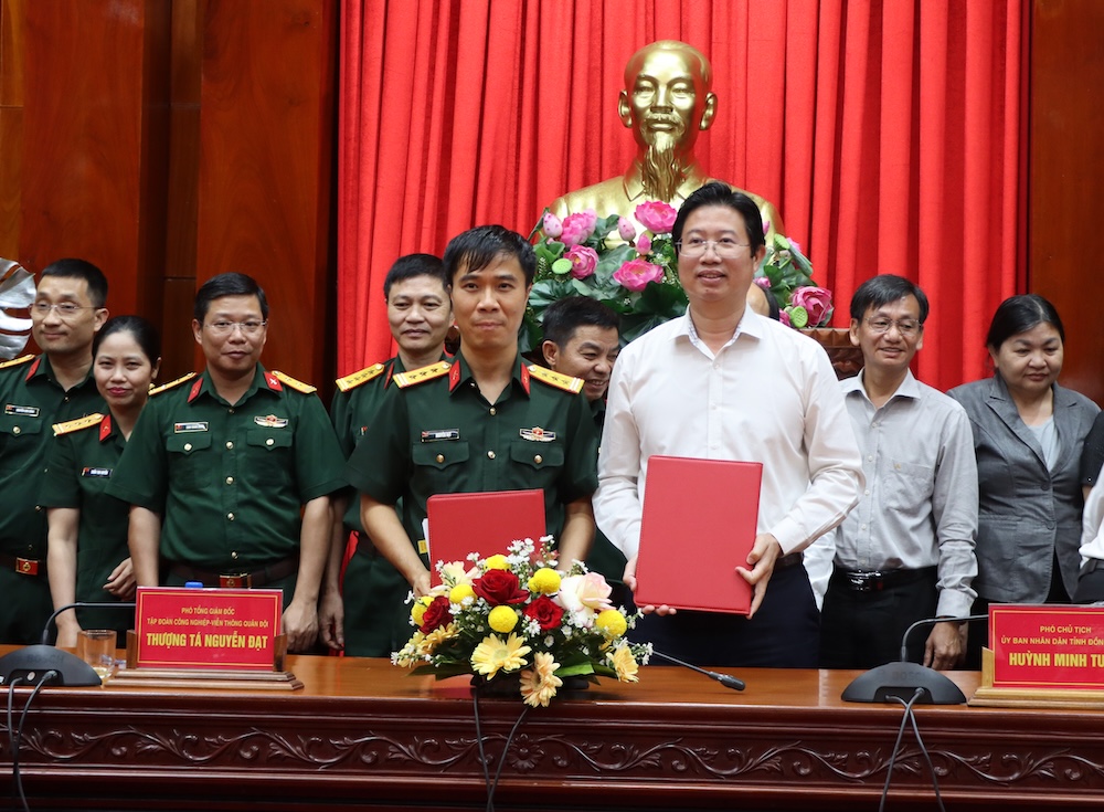 Phó Chủ tịch Uỷ ban nhân dân tỉnh Đồng Tháp và Phó Tổng Giám đốc Tập đoàn Công nghiệp - Viễn thông Quân đội ký kết thoả thuận