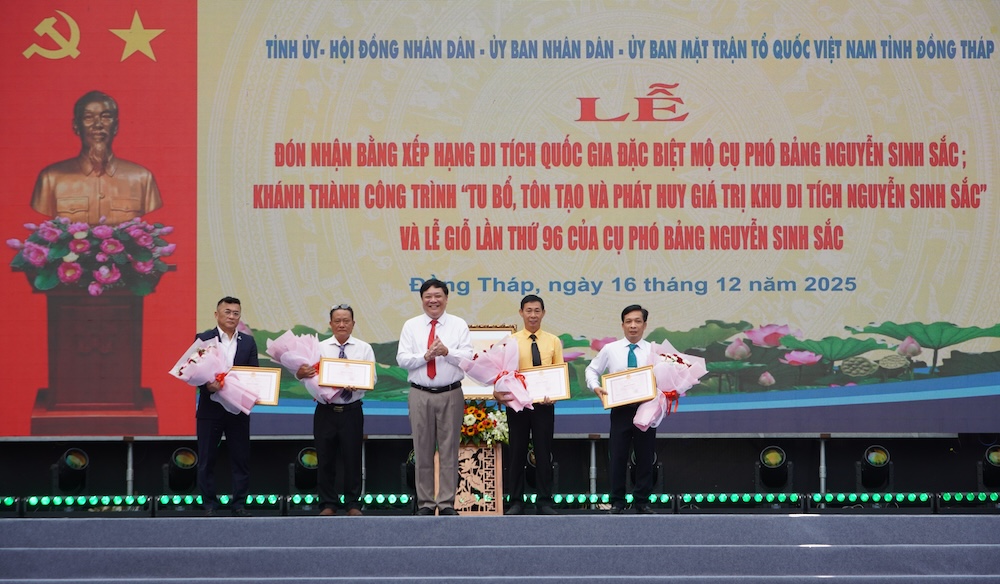 Trong không khí trang trọng, thiêng liêng và đầy ý nghĩa, sáng ngày 16/12 (nhằm ngày 27 tháng 10 năm Ất Tỵ) tại Khu di tích Nguyễn Sinh Sắc (phường Cao Lãnh), Tỉnh ủy, Hội đồng nhân dân, Ủy ban nhân dân, Ủy ban Mặt trận Tổ quốc Việt Nam tỉnh Đồng Tháp long trọng tổ chức Lễ đón nhận Bằng xếp hạng di tích quốc gia đặc biệt Mộ cụ Phó bảng Nguyễn Sinh Sắc, khánh thành công trình “Tu bổ, tôn tạo và phát huy giá trị Khu di tích Nguyễn Sinh Sắc” và Lễ giỗ lần thứ 96 Cụ Phó bảng Nguyễn Sinh Sắc.