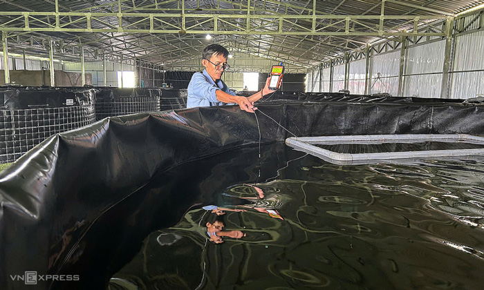 Ông Cơ cho biết, theo quy trình, nước lấy từ sông Tiền qua bể lắng, sau đó đưa vào hệ thống tuần hoàn gồm lọc vật lý, xử lý vi sinh, cấp oxy rồi đưa vào hệ thống bể nuôi. Quá trình này mất ba ngày. Nước trong bể nuôi, mỗi ngày sẽ được tuần hoàn qua hệ thống để xử lý tạp chất, sinh vật có hại và bổ sung oxy mới. Mỗi giờ hệ thống sẽ xử lý xong một bể nuôi 20 m3.