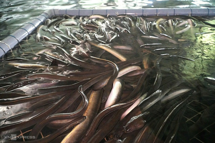 Nuôi cá chình trong bể lọc tuần hoàn để xuất đi Nhật