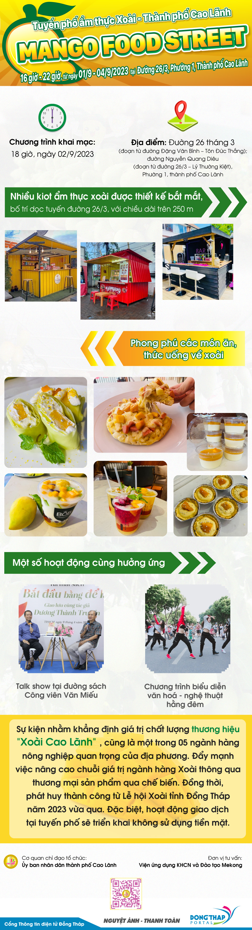 Tuyến phố ẩm thực Xoài, thành phố Cao Lãnh - Mango Street Food là bước khởi động thí điểm mô hình Tuyến phố Ẩm thực theo phong cách sáng tạo, hướng đến đặc trưng tài nguyên bản địa, tạo dấu ấn khác biệt thu hút giới trẻ ngay tại địa phương và du khách trong và ngoài nước đến tham quan Thành phố Cao Lãnh, tỉnh Đồng Tháp.
