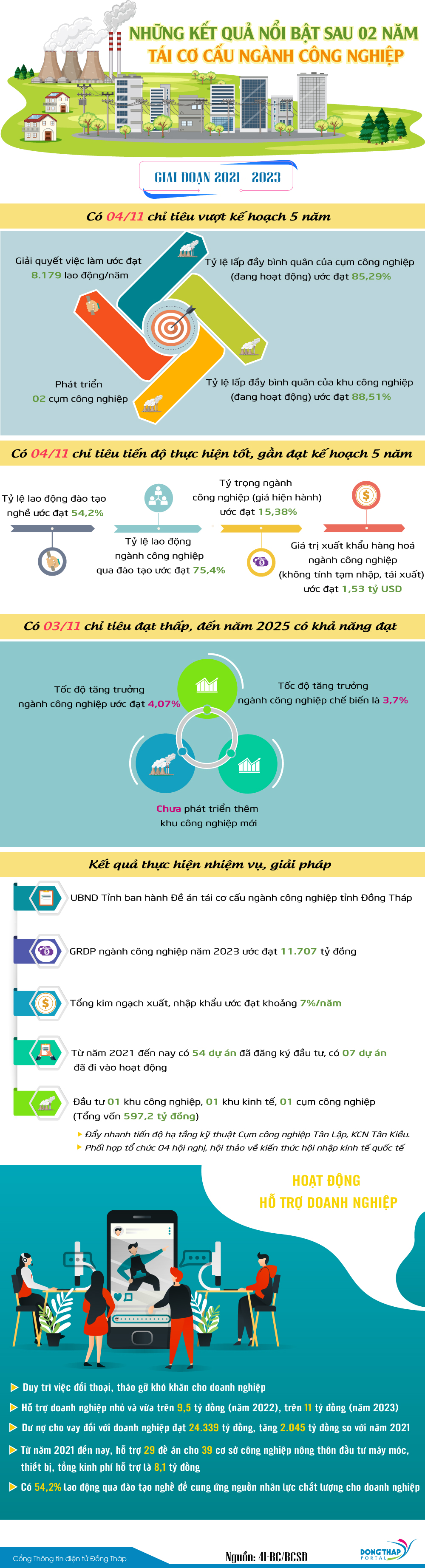 Một số kết quả giữa nhiệm kỳ trong thực hiện Kết luận số 248-KL/TU ngày 26/11/2021 của Ban Chấp hành Đảng bộ tỉnh khoá XI về tiếp tục thực hiện tái cơ cấu ngành công nghiệp tỉnh Đồng Tháp đến năm 2025, tầm nhìn đến năm 2030. Mời xem infographic dưới đây.