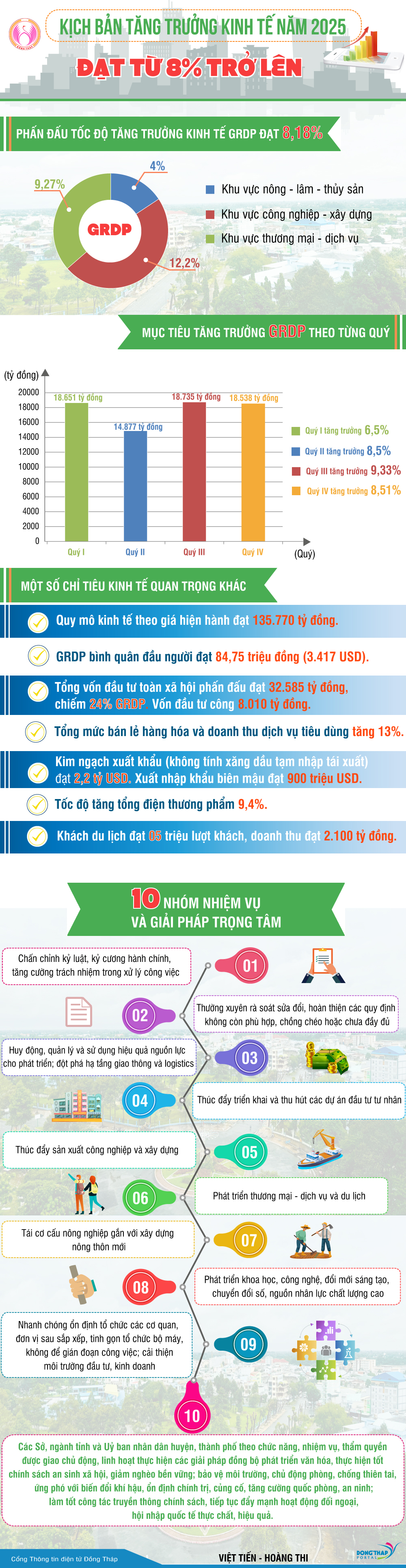 Để thực hiện đạt mục tiêu tăng trưởng kinh tế năm 2025 đạt từ 8% trở lên, góp phần đạt mục tiêu tăng trưởng chung cả nước. Uỷ ban nhân dân tỉnh đã ban hành kế hoạch thực hiện, trong đó xác định kịch bản tăng trưởng cụ thể cho từng quý.