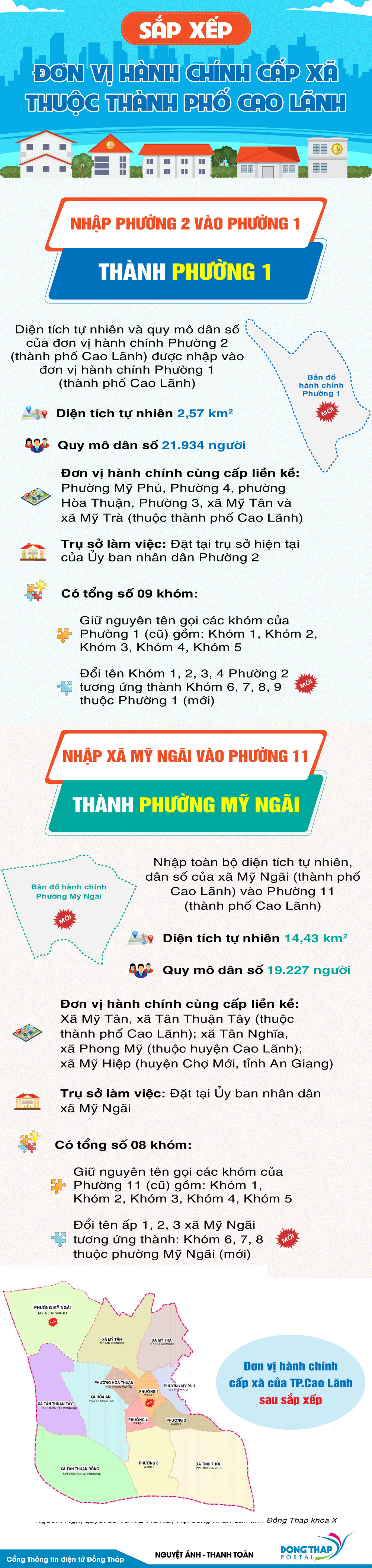 Kỳ họp thứ tám của Hội đồng nhân dân tỉnh Đồng Tháp khóa X đã thông qua Nghị quyết số 16/NQ-HĐND về việc tán thành chủ trương sắp xếp đơn vị hành chính cấp xã giai đoạn 2023 - 2025 của tỉnh Đồng Tháp. Cụ thể, tại thành phố Cao Lãnh, nhập Phường 2 vào Phường 1, nhập xã Mỹ Ngãi vào Phường 11.