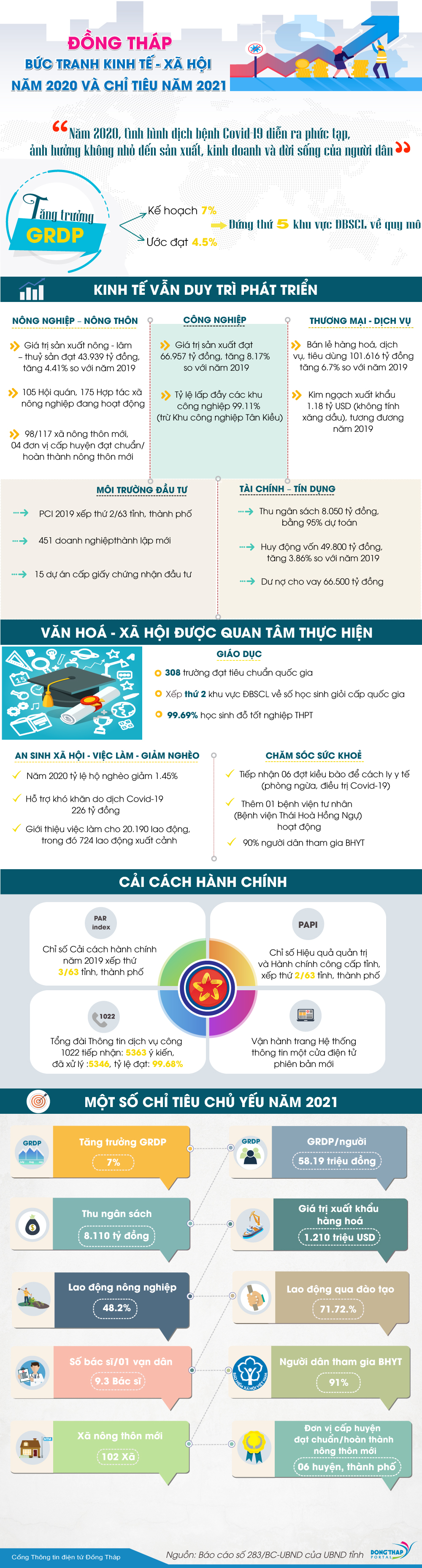 [Infographic] Đồng Tháp: Bức tranh kinh tế - xã hội năm 2020 và chỉ tiêu năm 2021