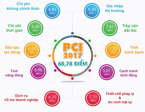Theo ông Trương Hoà Châu - Giám đốc Sở Kế hoạch và Đầu tư, PCI năm 2017 của tỉnh ghi nhận dấu ấn đối với cộng đồng doanh nghiệp từ một loạt chỉ số thành phần đứng đầu cả nước như: Tiếp cận đất đai, Tính minh bạch, Chi phí thời gian và là năm có điểm số tổng đạt cao nhất từ trước tới nay.