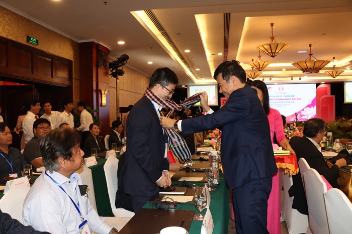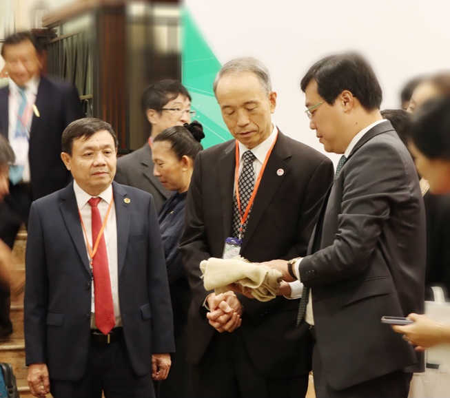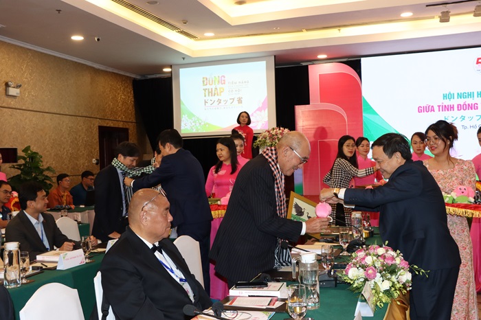 ファム・ティエン・ギア様は、会議開催を支援した日本の団体とビンズオン省とドンナイ省の指導者に感謝の記念品を贈呈しました。