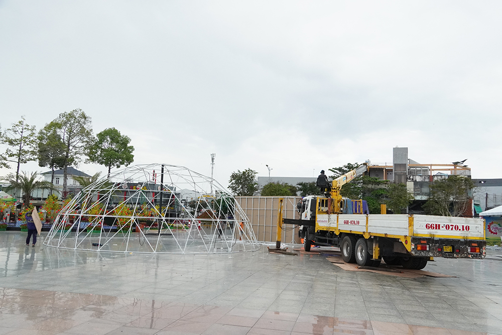 Các tiểu cảnh hoa, mô hình trang trí nghệ thuật đang được khẩn trương thi công tại khu vực Quảng trường Sa Đéc – không gian trung tâm diễn ra nhiều hoạt động chính của Festival