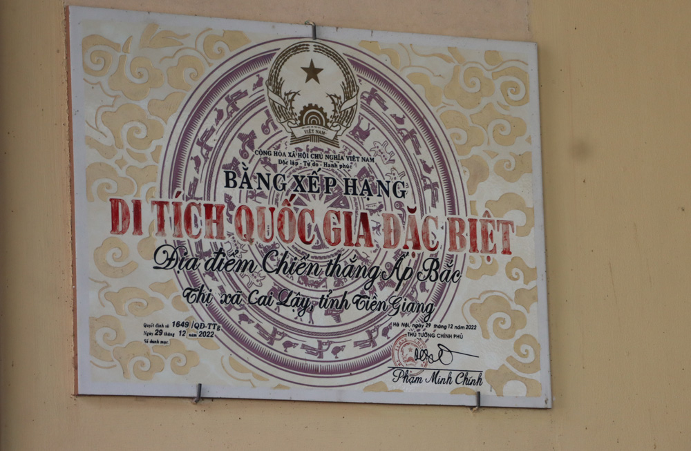 Di tích địa điểm Chiến thắng Ấp Bắc được công nhận là di tích cấp Quốc gia năm 1993. Ngày 29/12/2022, Thủ tướng Chính phủ ký quyết định xếp hạng Di tích Quốc gia đặc biệt