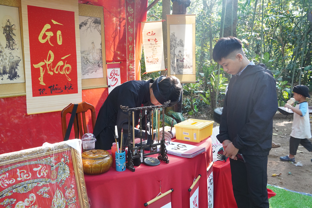 Du khách thích thú tham gia các hoạt động trải nghiệm tại lễ giỗ