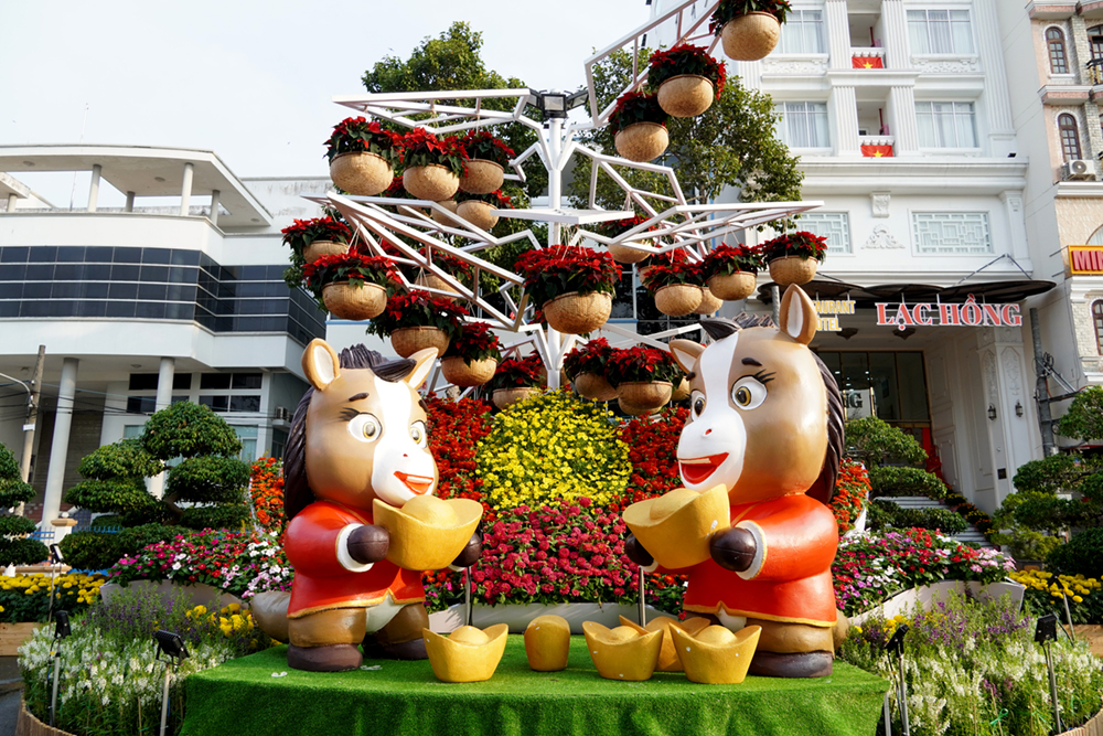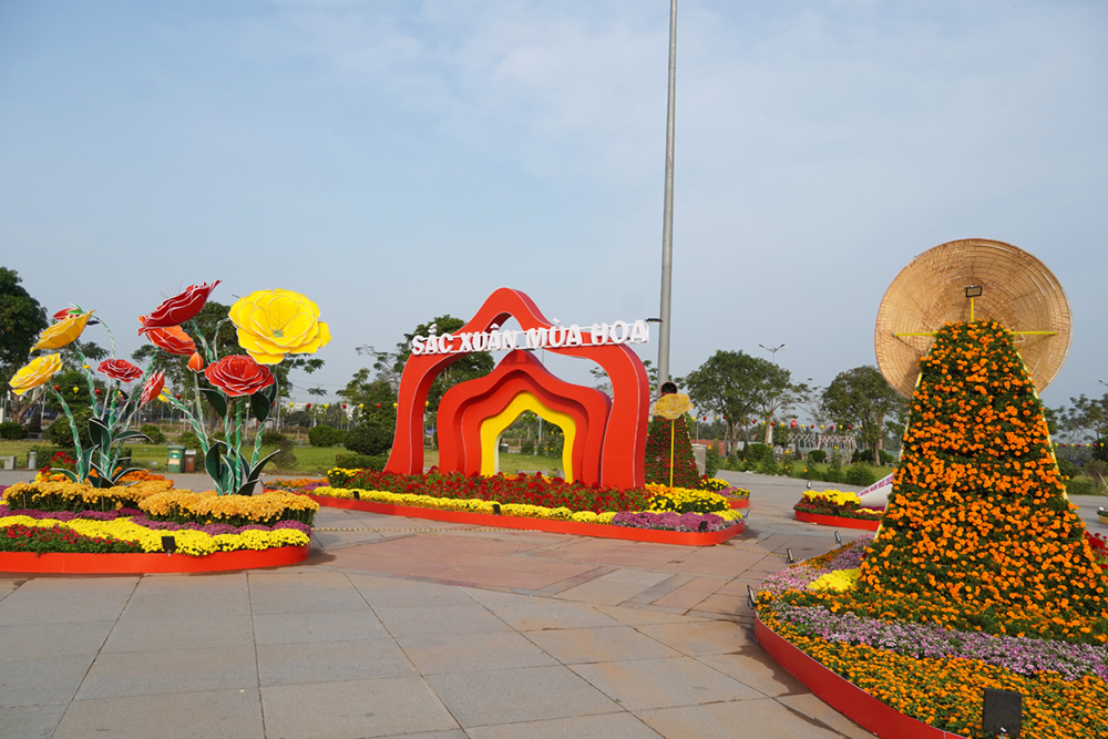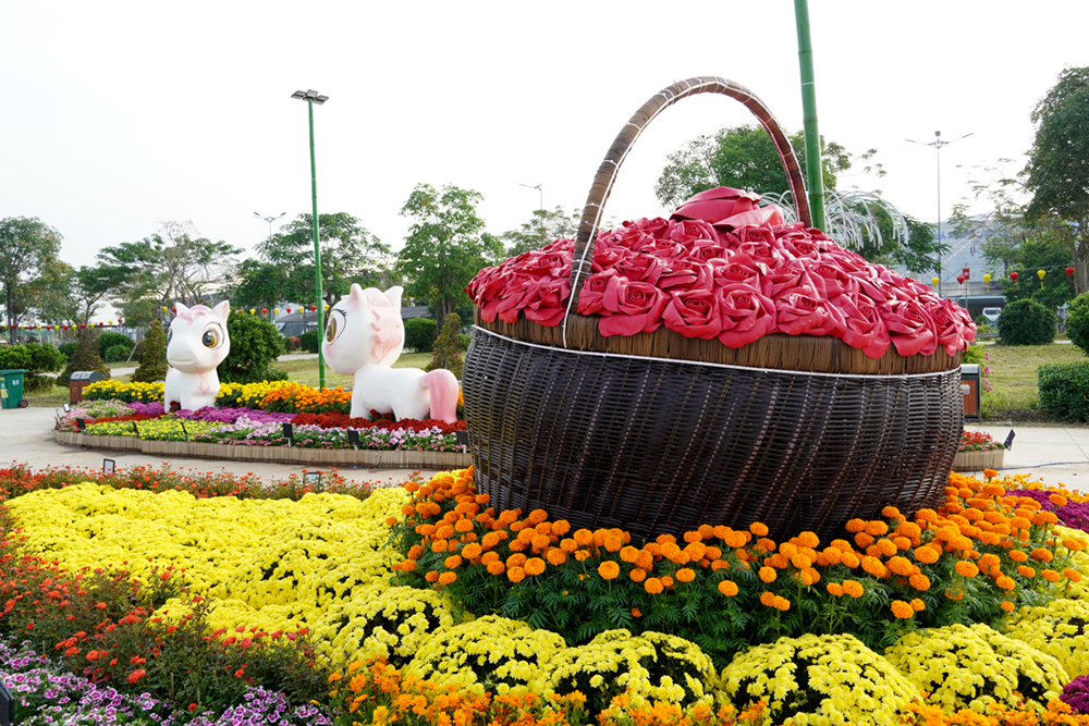 Tiểu cảnh “Sắc xuân mùa hoa” rực rỡ sắc màu, tạo điểm nhấn sinh động cho tuyến đường hoa