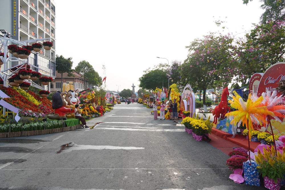Đường hoa Xuân Bính Ngọ 2026 của phường Mỹ Tho tại đường 30 tháng 4 sẵn sàng đón chào du khách đến du Xuân